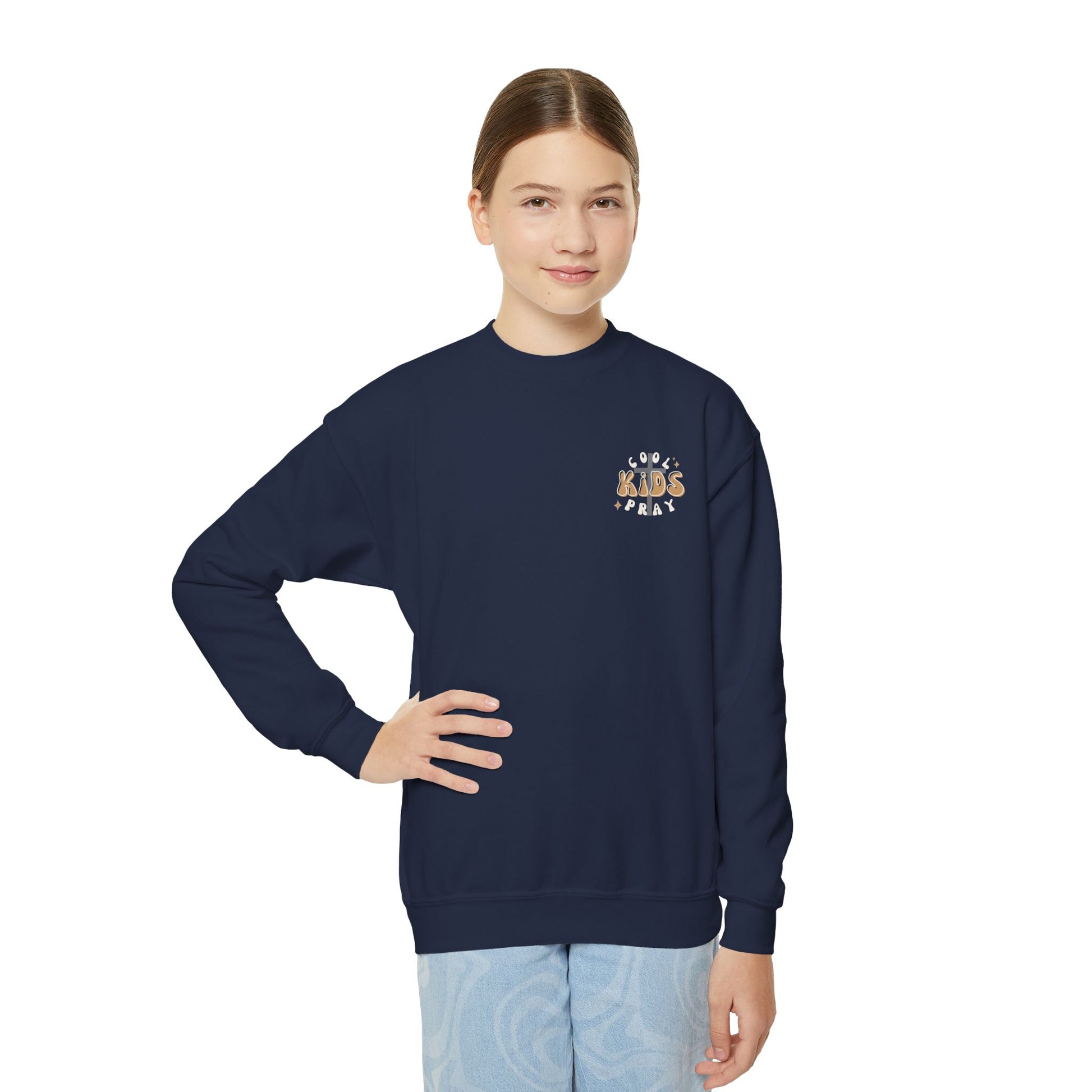 Youth Crewneck Sweatshirt - "Cool Kids Pray" Retro Graphic Pullover for Kids